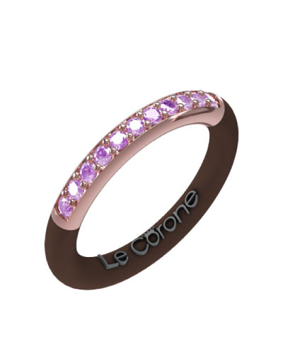 Le Corone Prstan Forever iz srebra 925 prevlečen z rose zlatom, vgrajenimi kubičnimi cirkon kamni v lila barvi ter enostavno prilagodljivim hipoalergenski silikonskim obročem. V ceno sta vključena dva dodatna silikonska obroča, darilna embalaža. 100% narejeno v Italiji. Nakup: Spletna Trgovina Hermossa